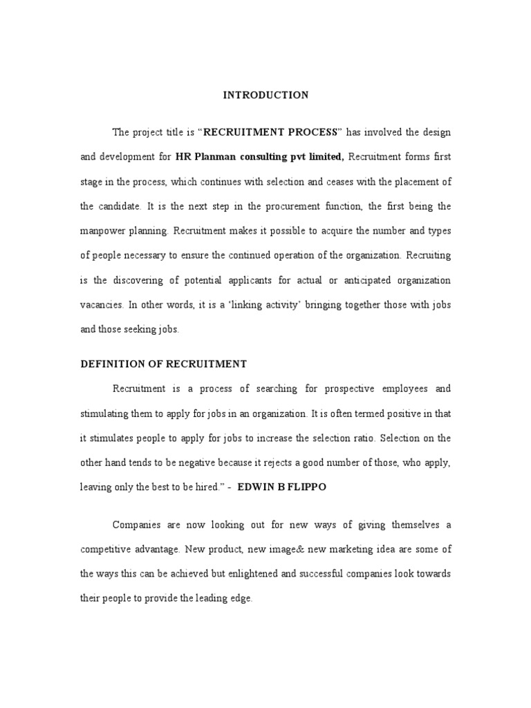 and development for HR Planman consulting pvt limited, Recruitment forms first