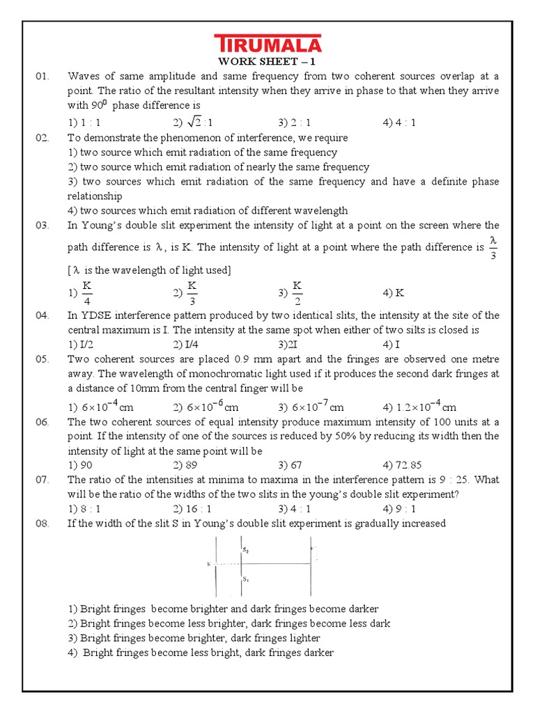 03. In Young’s double slit experiment the intensity of light at a point on the screen where the