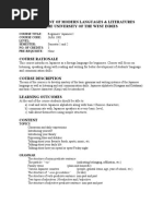 Course (tick √ ONE): LANG 1210 Japanese / LANG 1310 French / LANG 1330 Spanish