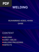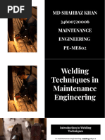 This document outlines the layout of a welding workshop, listing various welding processes like MIG, TIG and arc welding along the top row and equipment such as welding tables, a mechanical cutter, double grinder and gas welding along the left column with an office table in the bottom right corner.