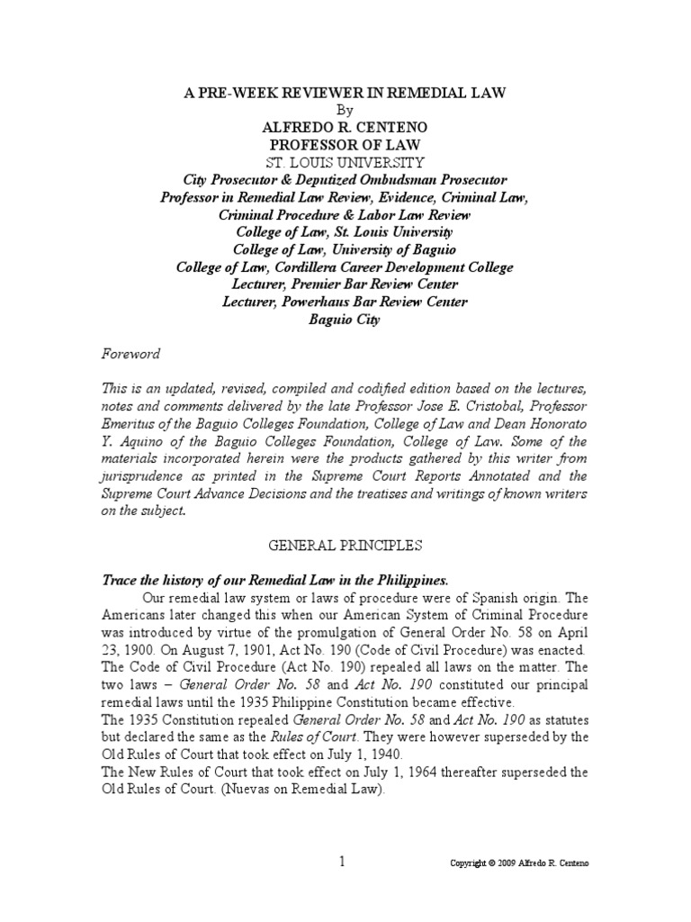 A PRE-WEEK REVIEWER IN REMEDIAL LAW