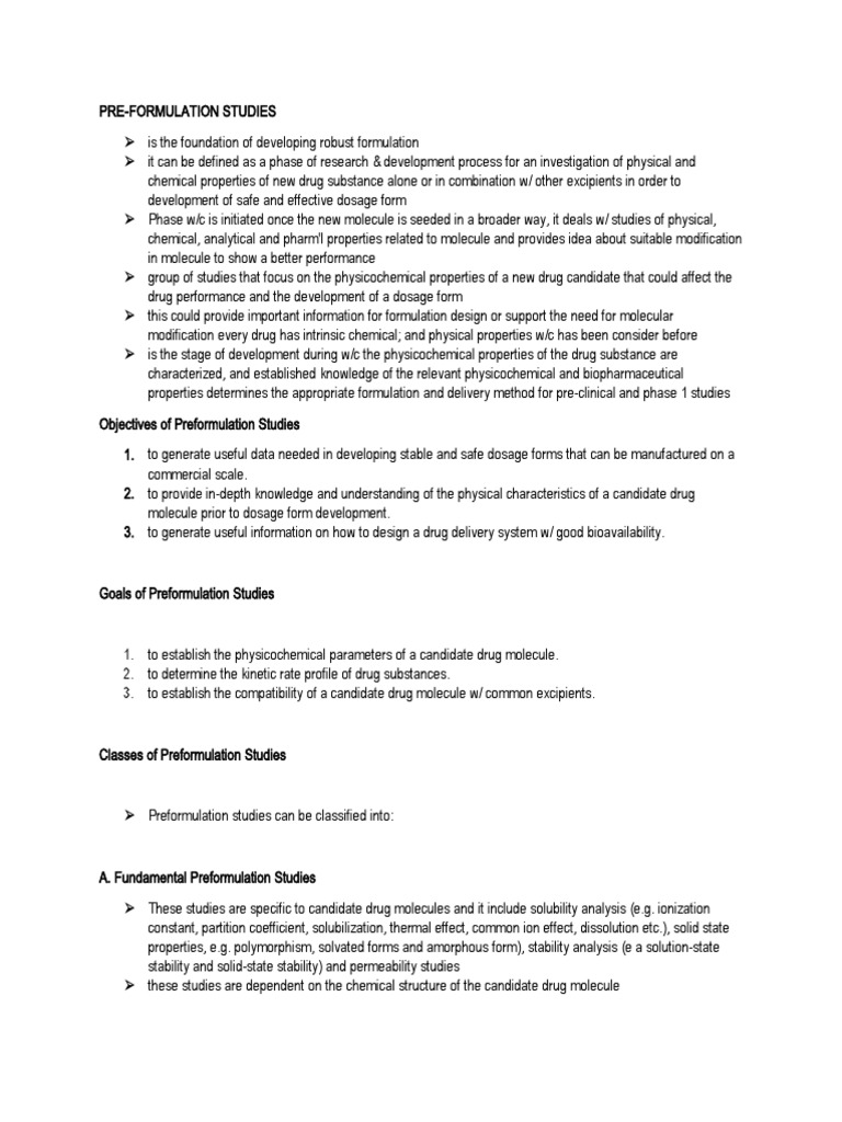 Classes of Preformulation Studies