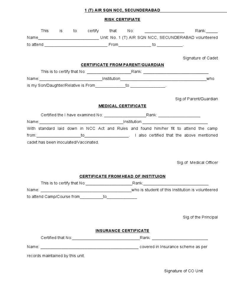 Name__________________________ Unit: No. 1 (T) AIR SQN NCC, SECUNDERABAD volunteered