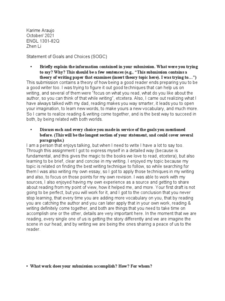 to say? Why? This should be a few sentences (e.g., “This submission contains a