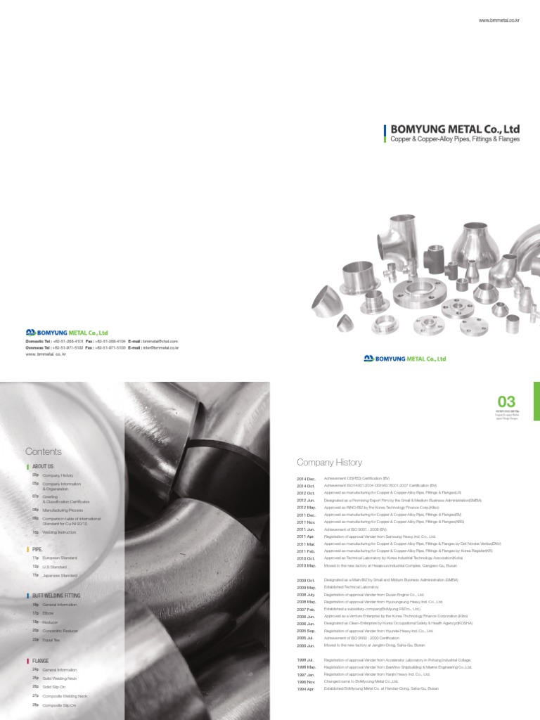 2011 Dec. Approved as manufacturing for Copper & Copper-Alloy Pipe, Fittings & Flanges(BV)