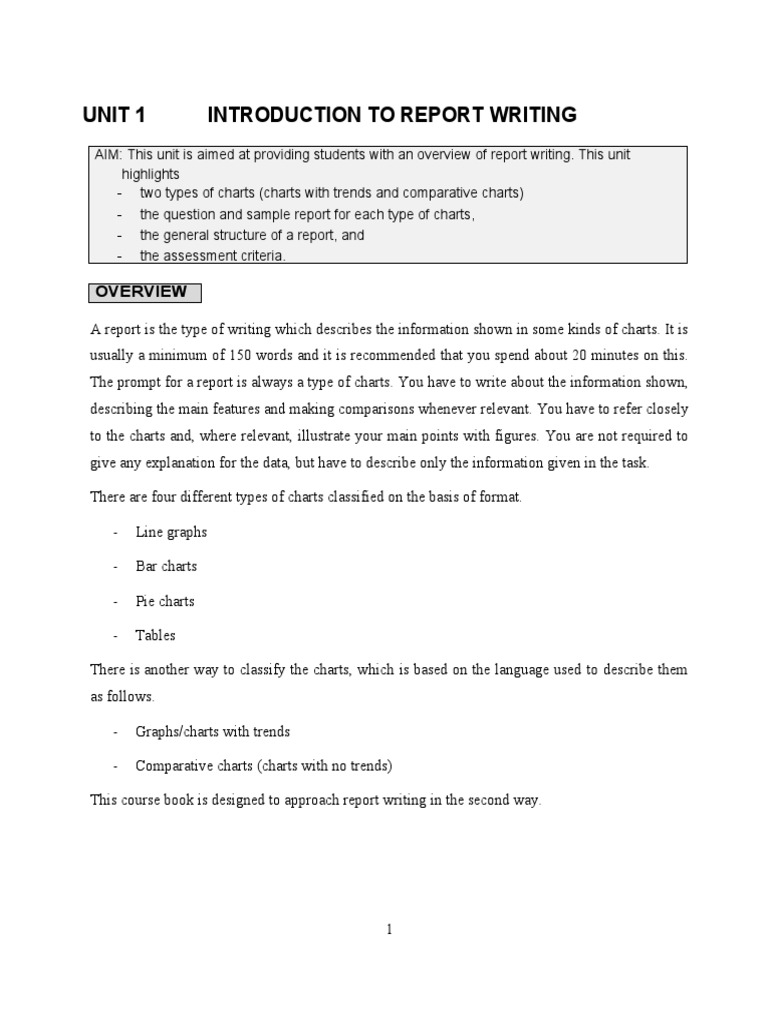 UNIT 1 INTRODUCTION TO REPORT WRITING