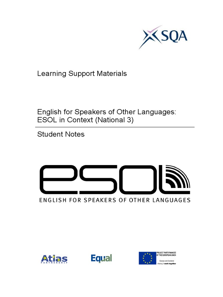 English for Speakers of Other Languages: ESOL in Context (National 3) Student Notes