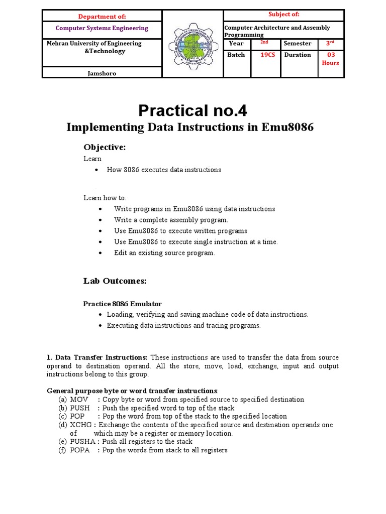 Implementing Data Instructions in Emu8086