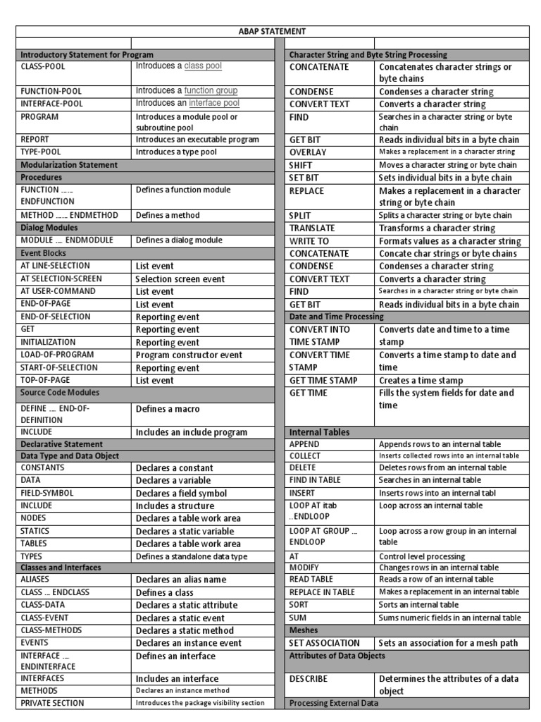 CLASS-POOL Introduces a class pool CONCATENATE Concatenates character strings or