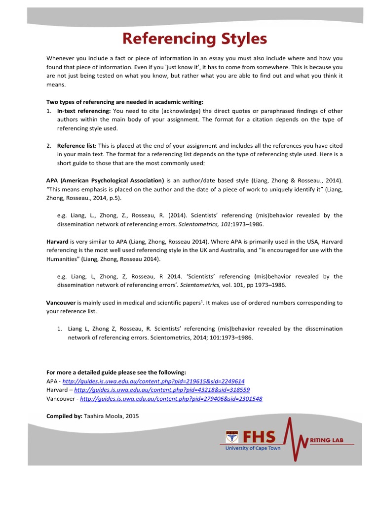 referencing is the most well used referencing style in the UK and Australia, and “is encouraged for use with the