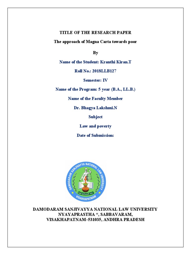 Title of The Research Paper The Approach of Magna Carta Towards Poor by