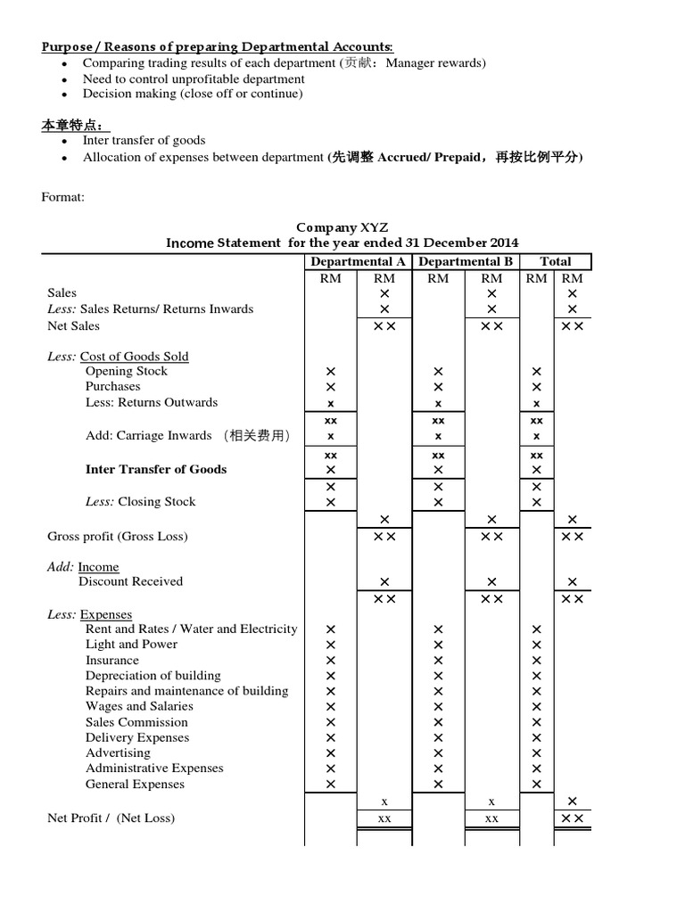 Allocation of expenses between department (先调整 Accrued/ Prepaid,再按比例平分)