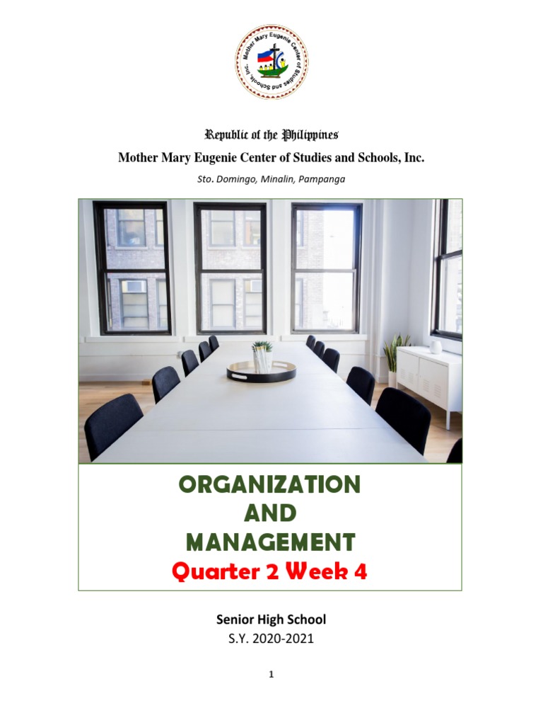 controlling, and orient the students on the importance of these functions and the role of each area in