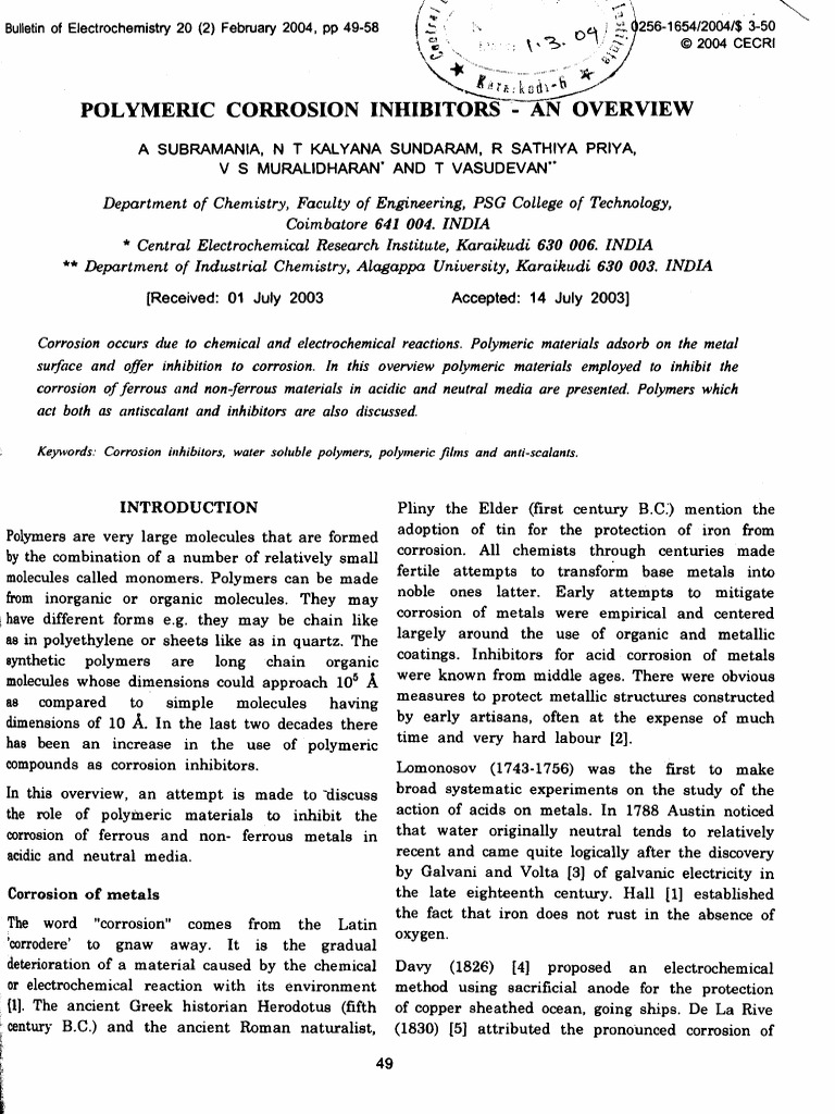 SUBRAMANIA et al. - ,Polymeric corrosion inhibitors - A n overview