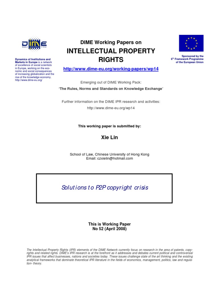SOLUTIONS TO P2P COPYRIGHT CRISIS
