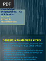 Random errors are errors made by the person carrying out the measuring, and are usually down