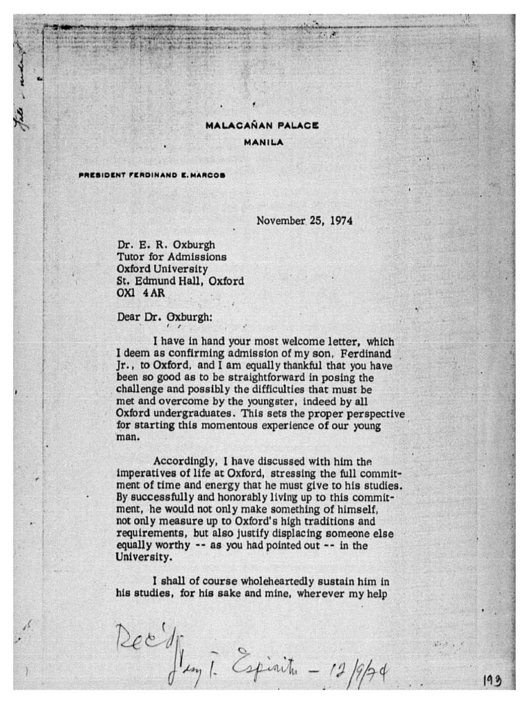 Ideem as confirming admission of my son, Ferdinand