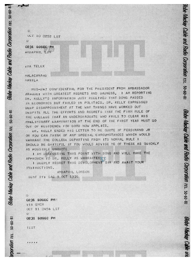 VIA TELEX