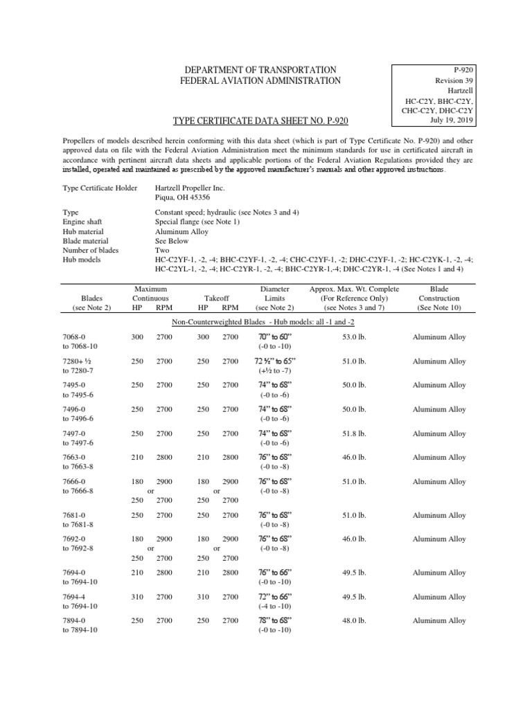TYPE CERTIFICATE DATA SHEET NO. P-920 July 19, 2019