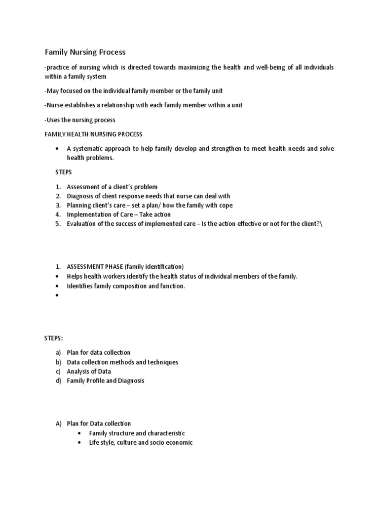 FAMILY NURSING CARE PLAN – Is the Blueprint of the care that the nurse designs to