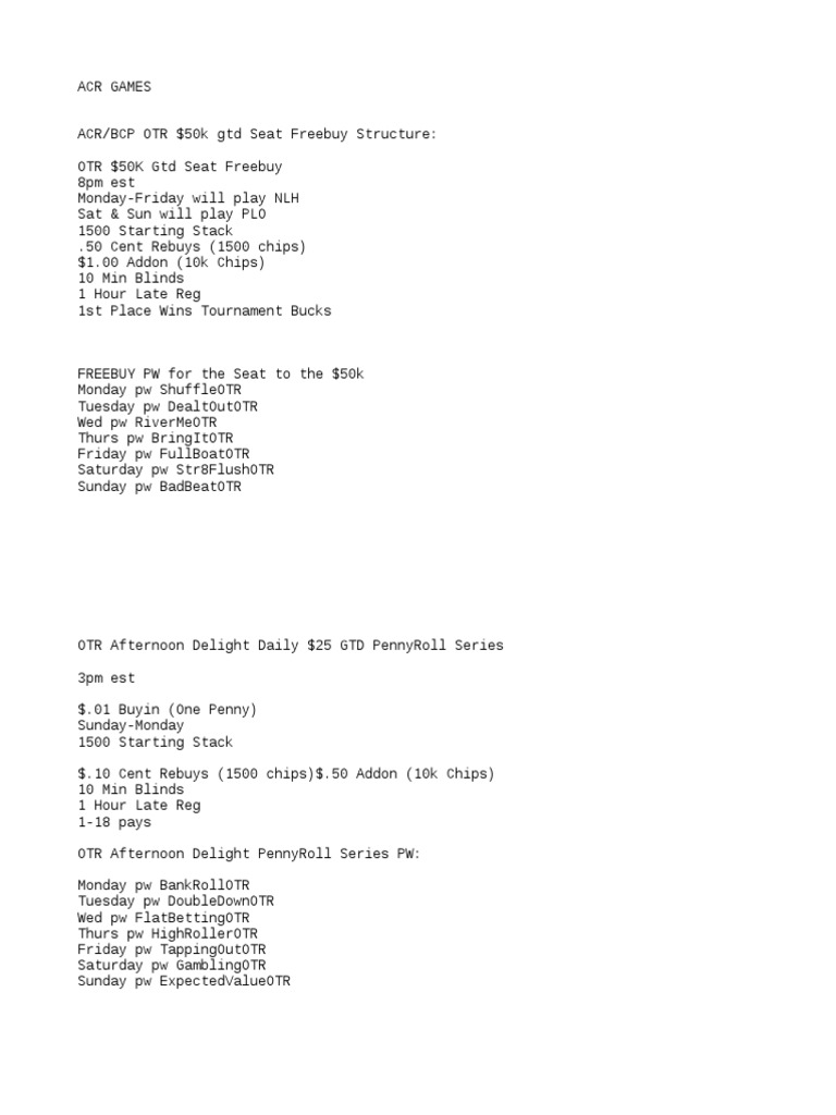 ACR/BCP OTR $50k gtd Seat Freebuy Structure: