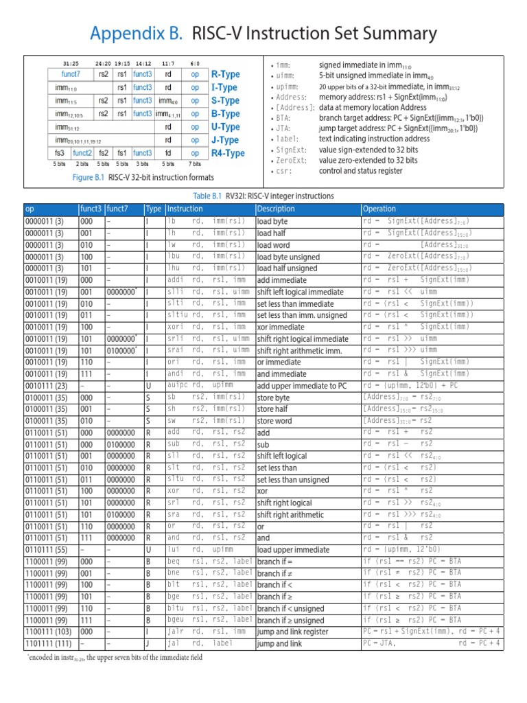 Table B.1 RV32I: RISC-V integer instructions