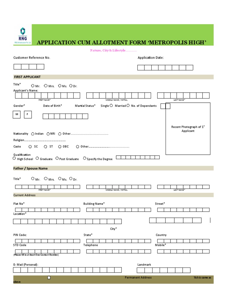 APPLICATION CUM ALLOTMENT FORM ‘METROPOLIS HIGH’