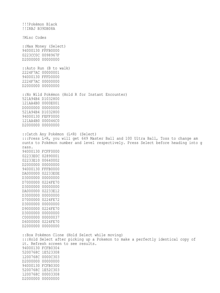 !Pokédex Codes