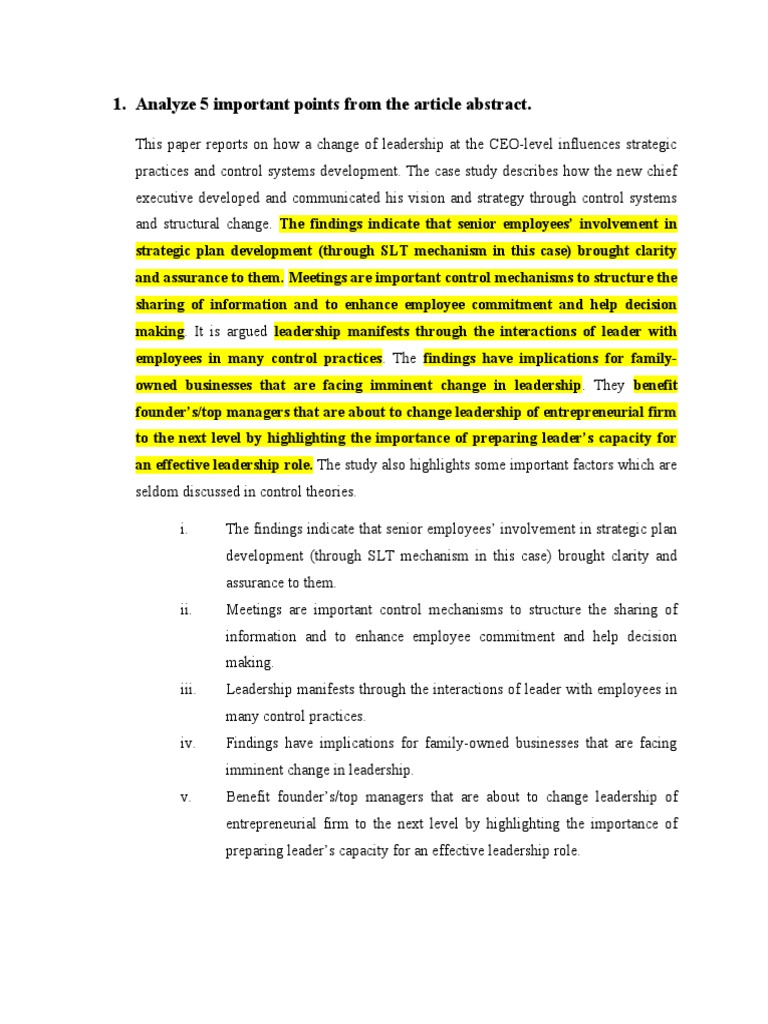 i. The findings indicate that senior employees’ involvement in strategic plan