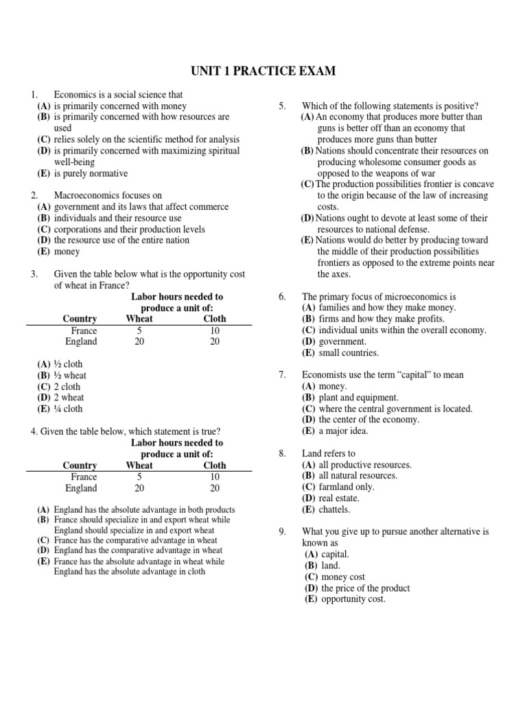 (B) ½ wheat 7. Economists use the term “capital” to mean