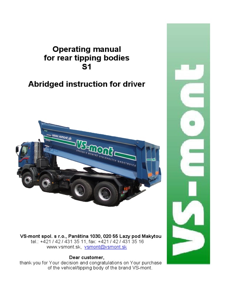 Operating manual for rear tipping bodies S1