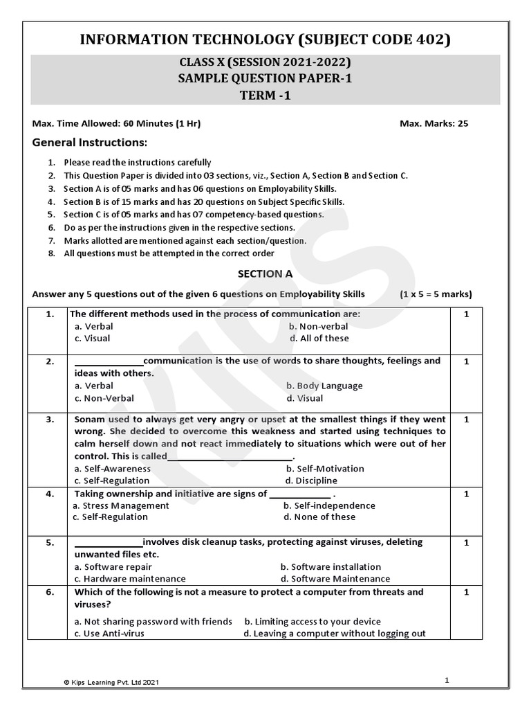 INFORMATION TECHNOLOGY (SUBJECT CODE 402)