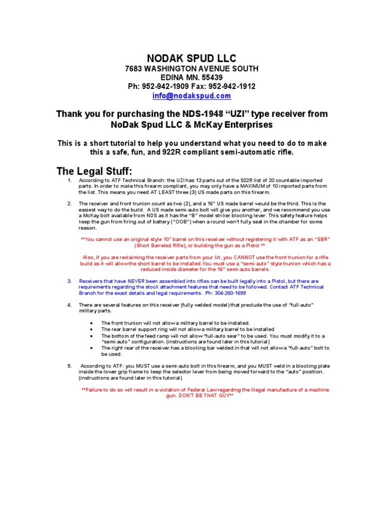 Thank you for purchasing the NDS-1948 “UZI” type receiver from