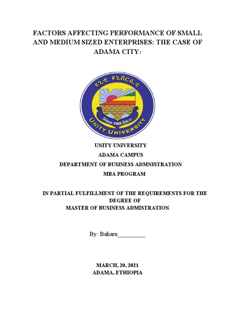 for the masters of business administration, Addis Ababa University, Ethiopia.