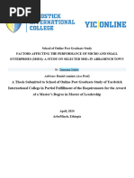 Micro and small enterprises (the case of Dessie Town). A Thesis Presented in Partial