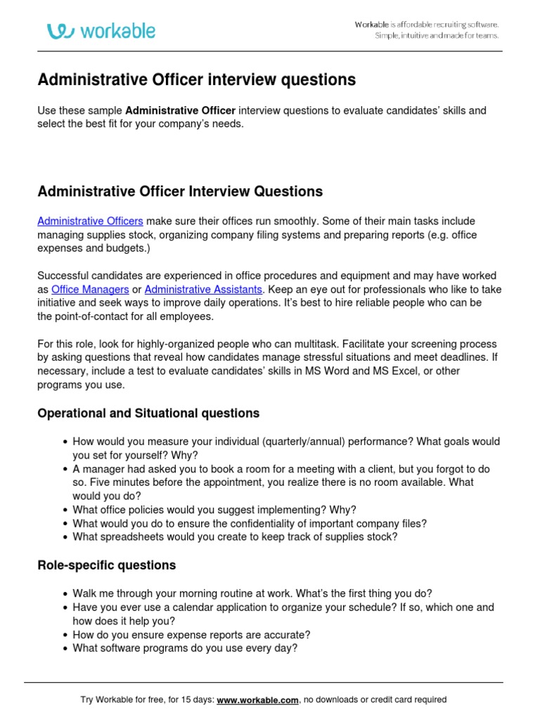 Use these sample Administrative Officer interview questions to evaluate candidates’ skills and