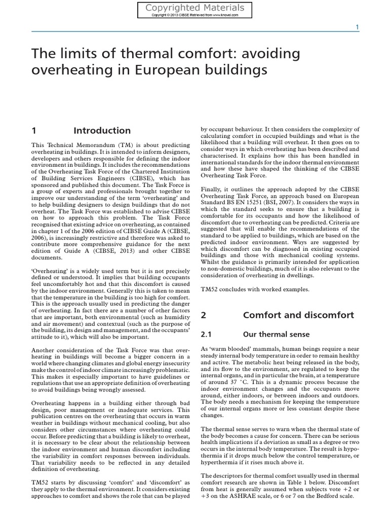 This Technical Memorandum (TM) is about predicting likelihood that a building will overheat. It then goes on to