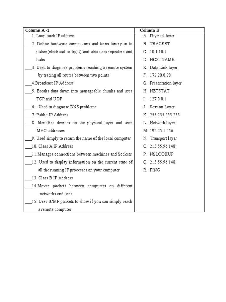 ___3. Used to diagnose problems reaching a remote system E. Data Link layer