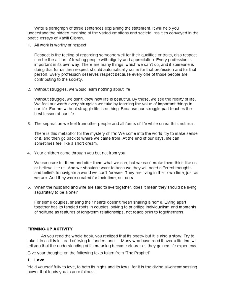 3. How do you understand these poems from Khalil Gibran based from meaning and