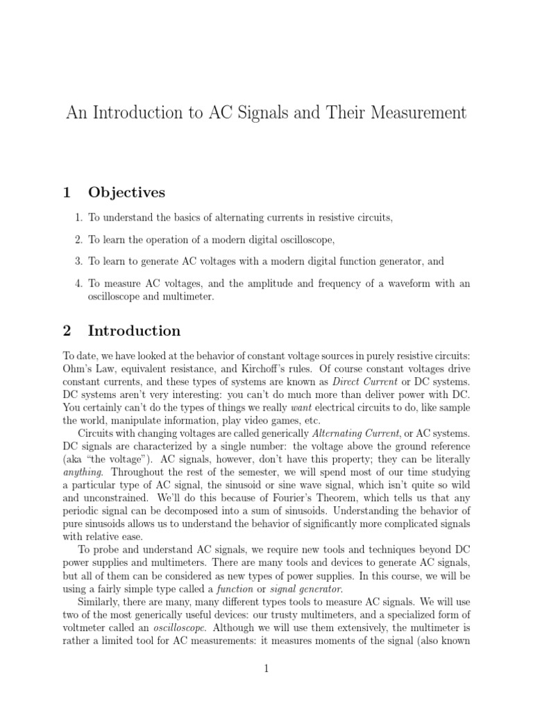 3. To learn to generate AC voltages with a modern digital function generator, and