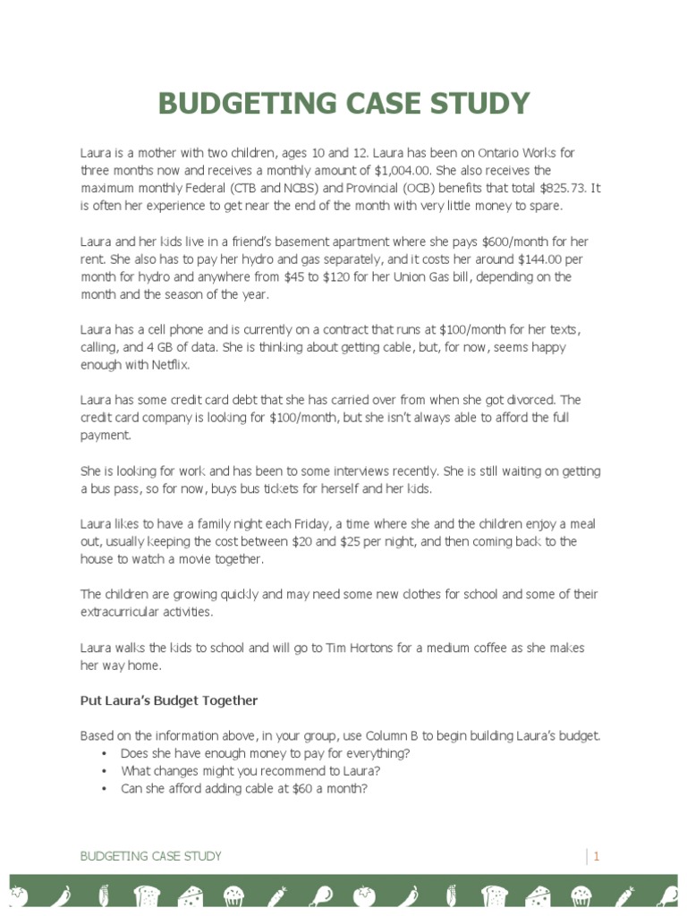 Based on the information above, in your group, use Column B to begin building Laura’s budget.