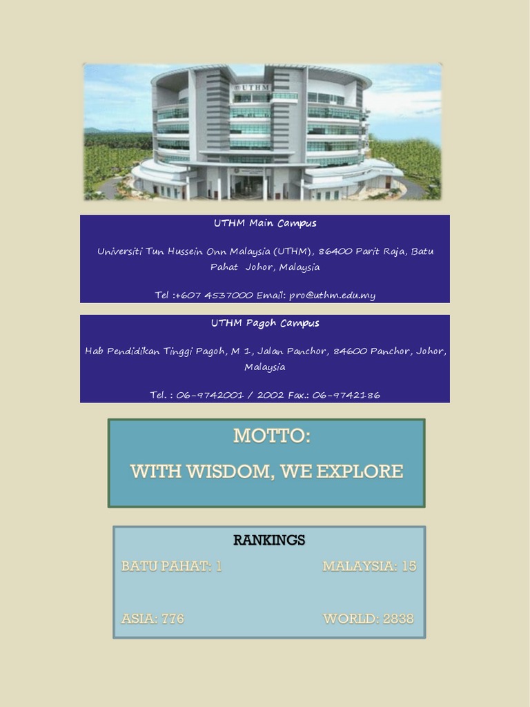 Tel :+607 4537000 Email: pro@uthm.edu.my