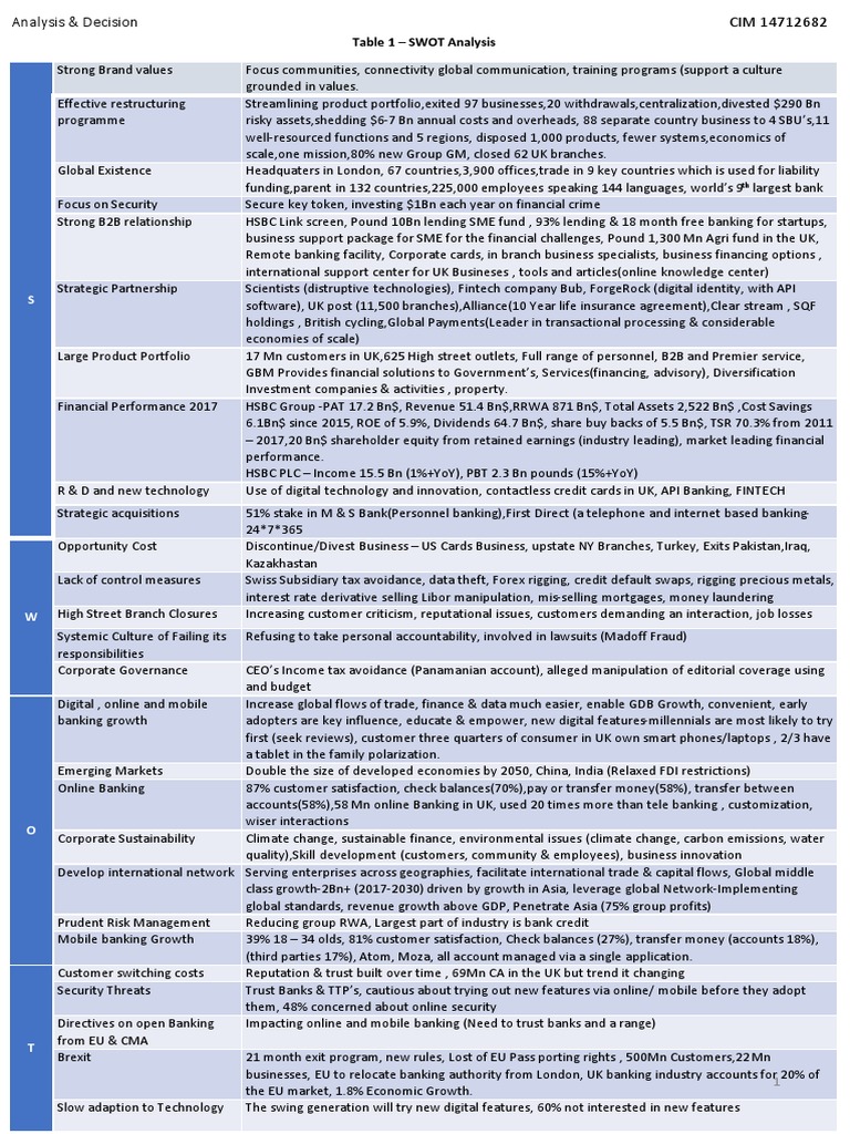 Analysis & Decision Table 10 – Strategic Intent Table 11 – Ansoffs Growth Matrix CIM 14712682