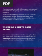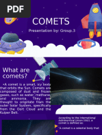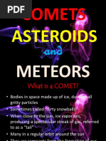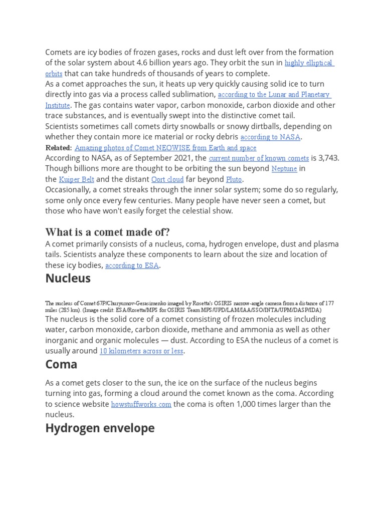 Comets are icy bodies of frozen gases, rocks and dust left over from the formation