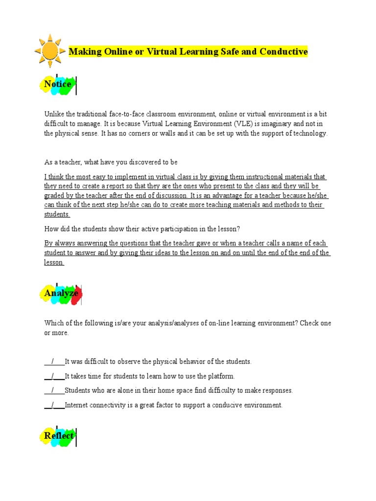 Making Online or Virtual Learning Safe and Conductive