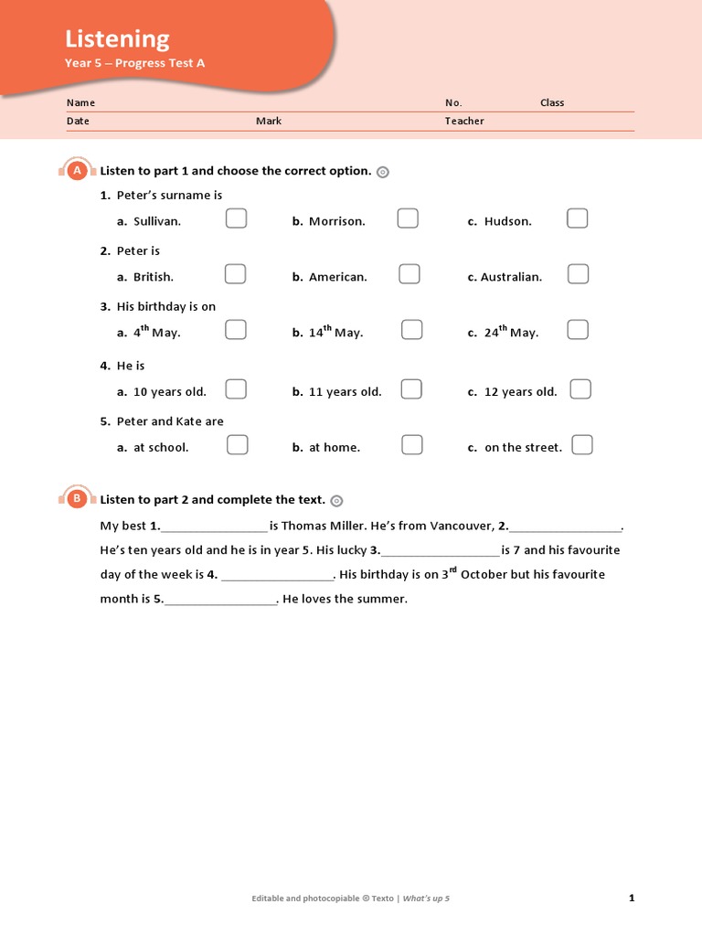 Editable and photocopiable © Texto | What’s up 5 1