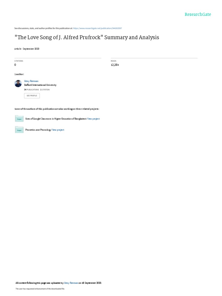 "The Love Song of J. Alfred Prufrock" Summary and Analysis