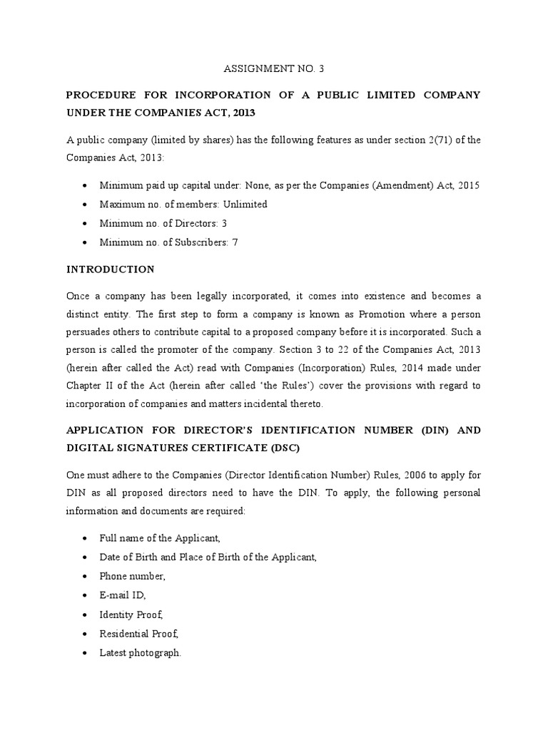 PROCEDURE FOR INCORPORATION OF A PUBLIC LIMITED COMPANY