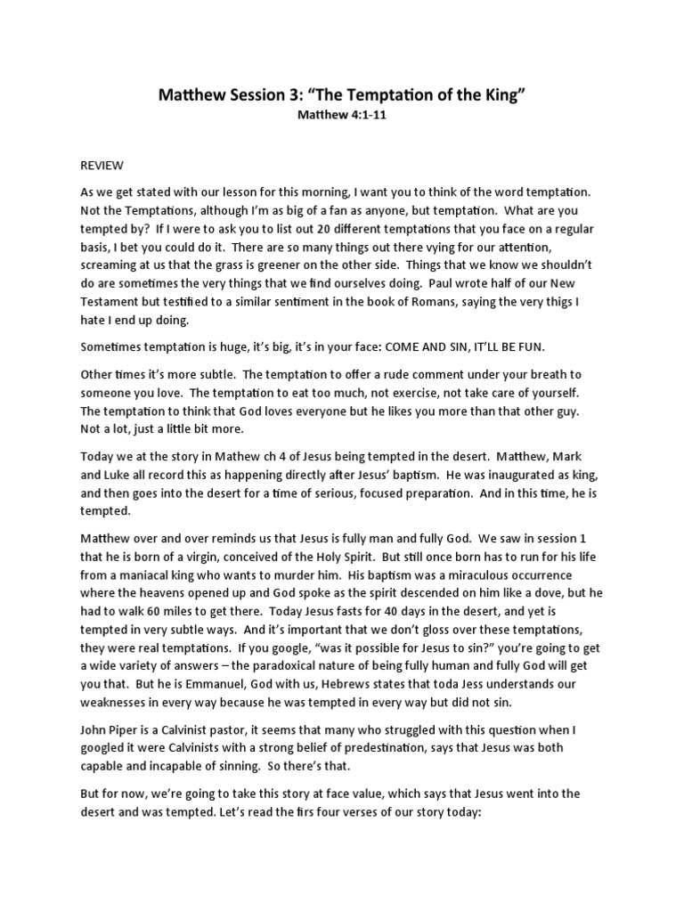 Today we at the story in Mathew ch 4 of Jesus being tempted in the desert. Matthew, Mark
