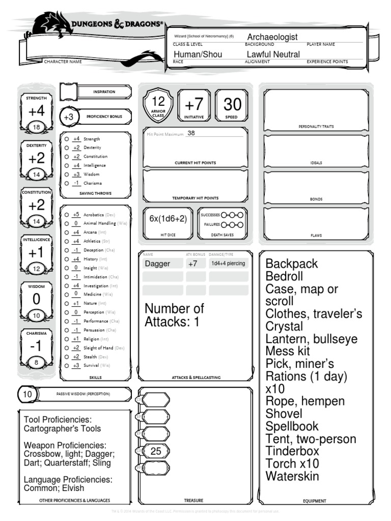 CLASS & LEVEL BACKGROUND PLAYER NAME